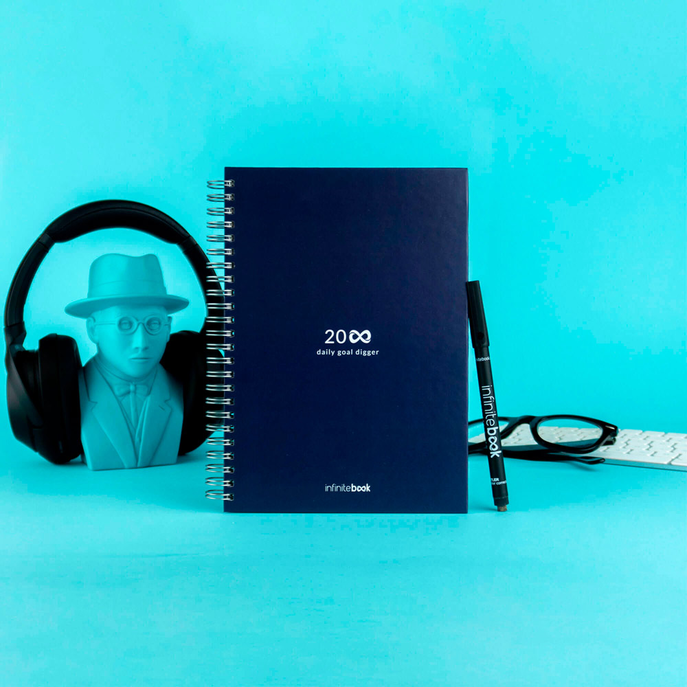 Štartovacia sada "Infinite Diary" vám umožní jednoducho vymazať všetko, čo ste si napísali, a začať svoj denný plán znova tak často, ako chcete. Skladá sa z A5 "Infinite Diary" s pevným obalom a krúžkami, čistiacej súpravy (prázdna fľaštička s rozprašovačom, hubka a handrička), fixky a držiaka na fixky. Jadro "Infinity diary" tvoria 2 strany na zaznamenávanie vašich úloh, 10 strán na týždennú organizáciu, 1 strana na mesačnú organizáciu, 1 strana na ročnú organizáciu rozdelenú na týždne a 22 obyčajných tabuľových strán na zapisovanie poznámok. Poznámky je možné skenovať. Vyrobené v Európe. Produkty sú dodávané v krabici. 148 x 210 mm | Krabička: 225 x 175 x 46 mm